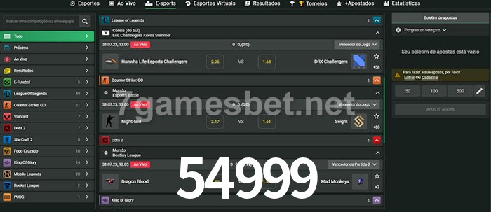O 54999 oferece uma grande seleção de opções de apostas em e-sports com probabilidades competitivas